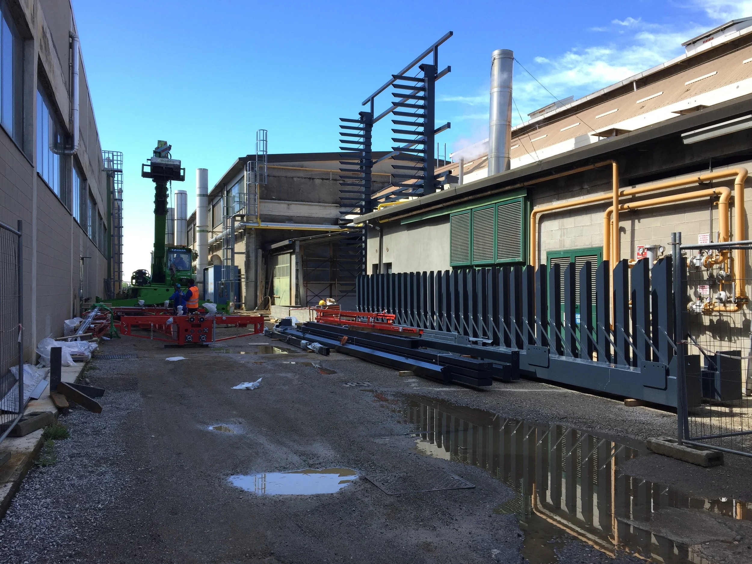 Abbiamo realizzato un magazzino automatico integrato all’interno di un corpo di fabbrica esistente, ottimizzando gli spazi e adattandoli alle nuove esigenze operative. Le fondazioni in cemento armato sono state rinforzate attraverso l’installazione di micropali, garantendo una maggiore stabilità strutturale. Uno dei pilastri portanti preesistenti è stato demolito e sostituito con un portale in carpenteria in acciaio, progettato per assicurare la massima resistenza e durabilità nel tempo. L’intervento ha richiesto un’attenta pianificazione tecnica per preservare l’integrità dell’edificio e garantire la piena funzionalità della nuova struttura.